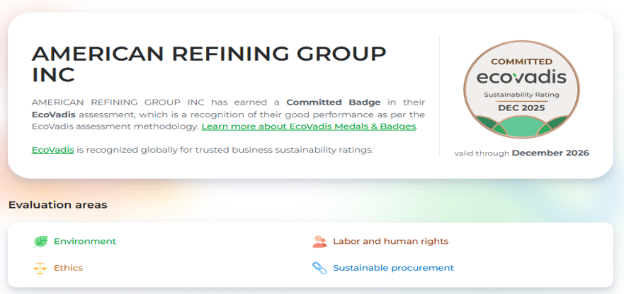 American Refining Group is committed to conducting business in a socially responsible manner and to protecting the environment and meeting all applicable state and federal compliance obligations. We will maintain an environmental management system that will serve as a framework for meeting the following objectives: